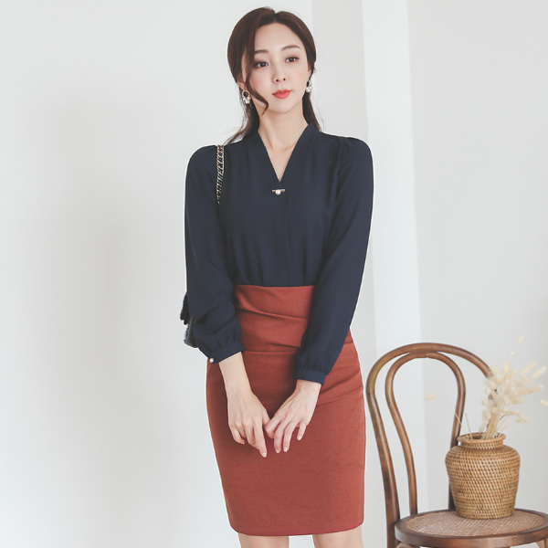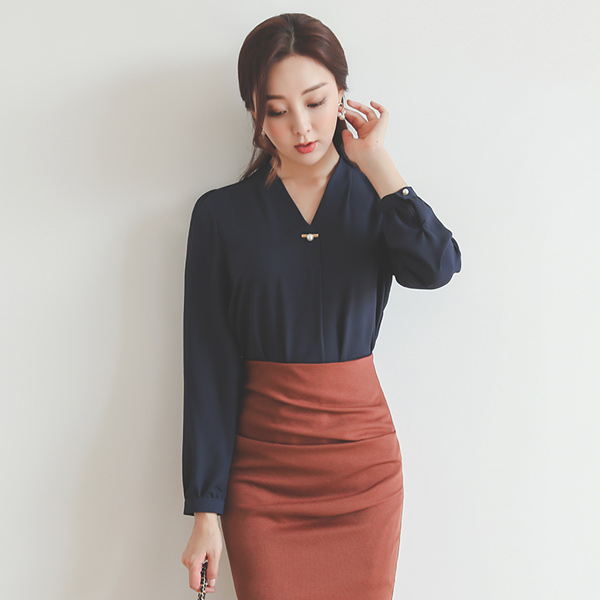 Pearl Gold Tip Point V-neck Blouse Ⅳ
