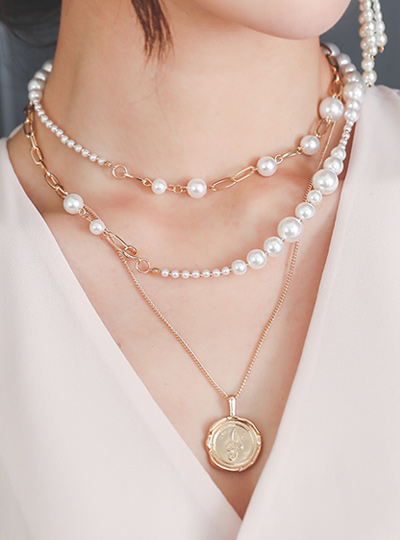 Pearl&Coin layered Gold Necklace(2set)