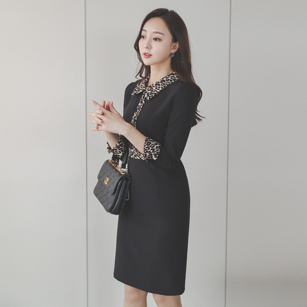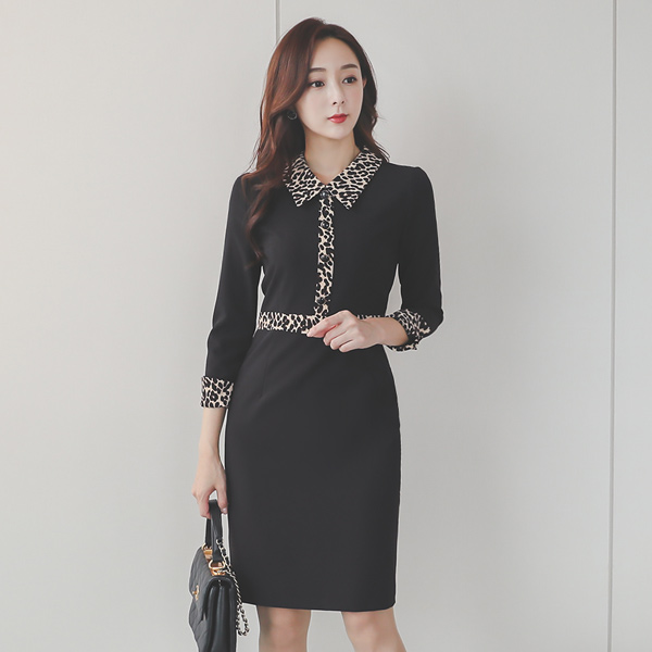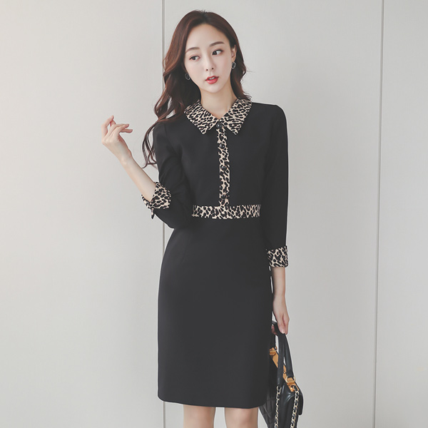 Leopard Color Combination Collar Shirt Dress
