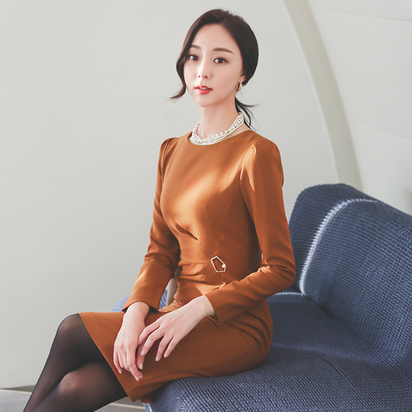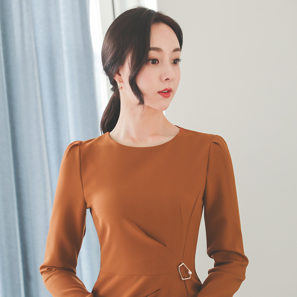 Pearl Brooch Pinch Shirring Cutting-line Dress