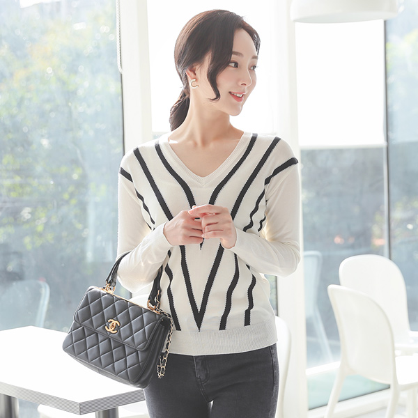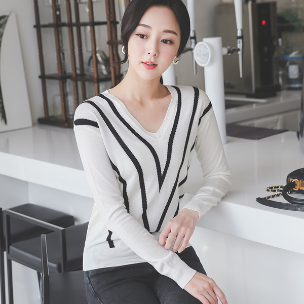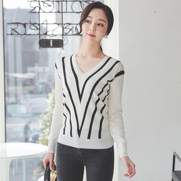 v Color Combination Slim Knit