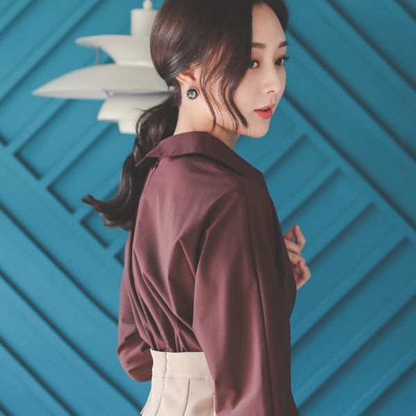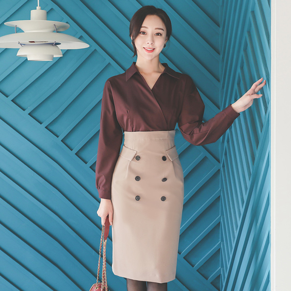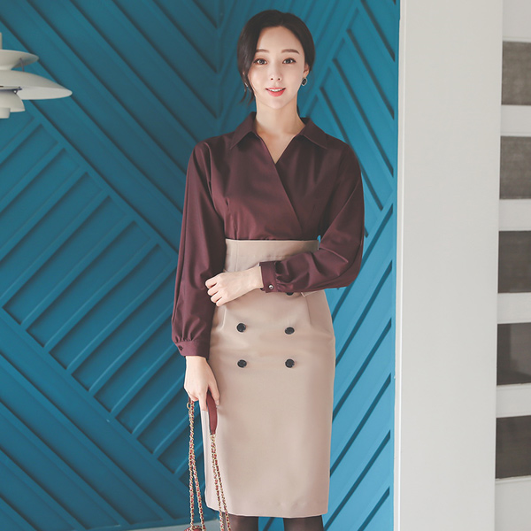 Wrap-Shirts Color Combination Flap Pocket Double-button Dress