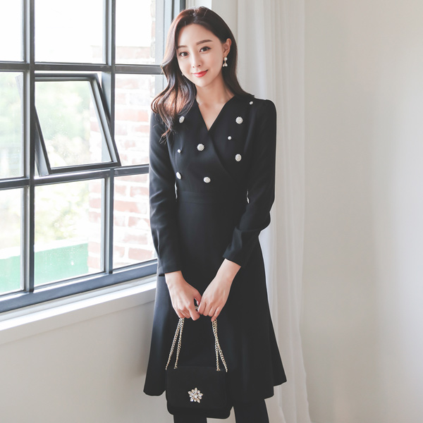 Pearl Flower Gored A-line Dress