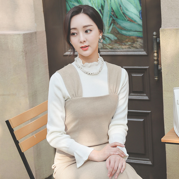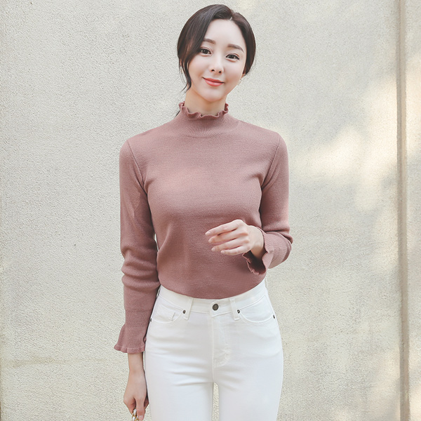 Frill Half-Turtleneck Ruffle Cuffs Knit