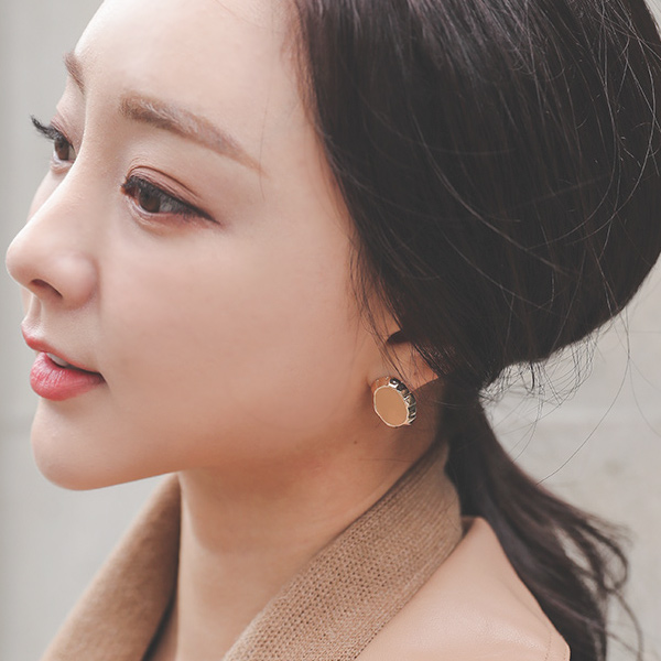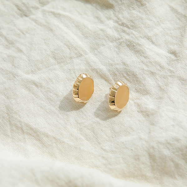 Wave Gold Ring Round Earring