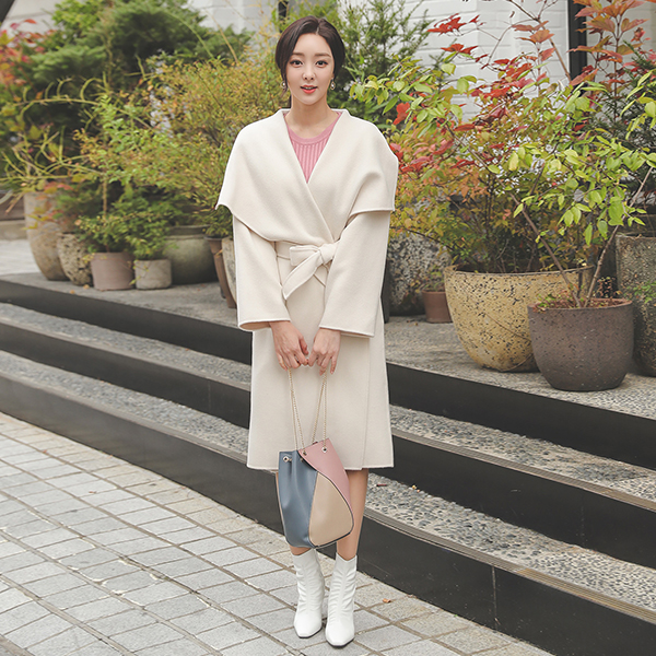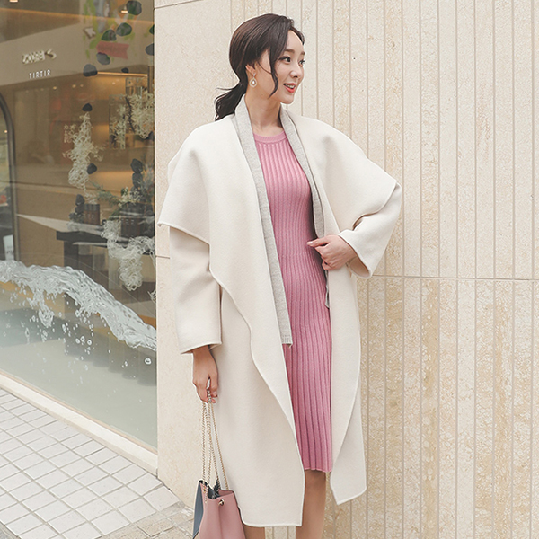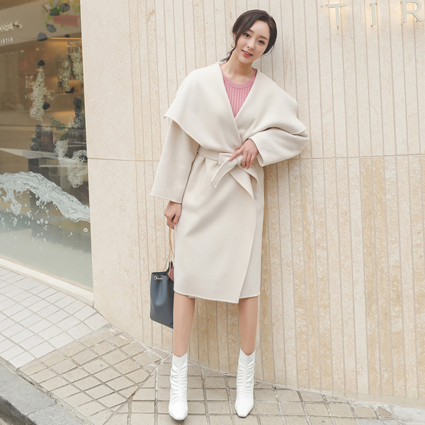 Natural Wide Collar Hand-Made Wool Coat