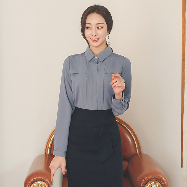 Flap Decoration Hidden Button Collar Blouse