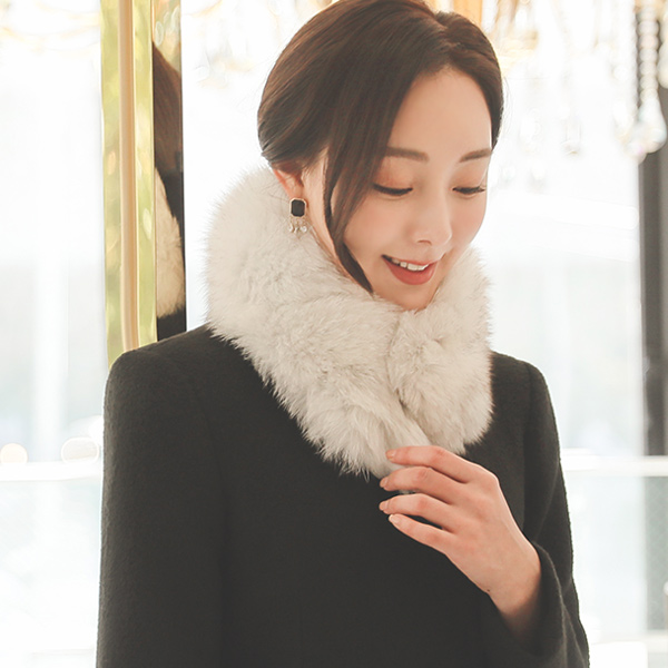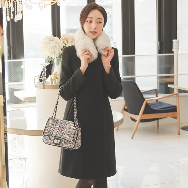 No-collar Hidden Cutting-line Bouclé Fox-Fur Coat