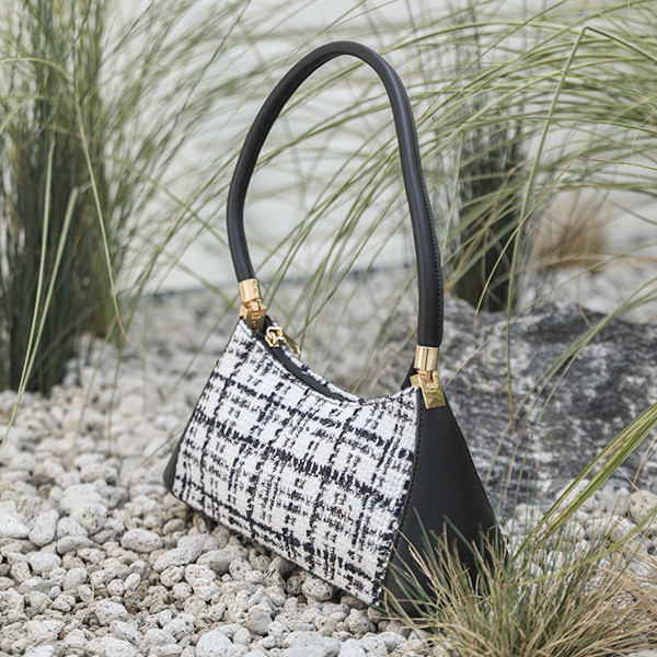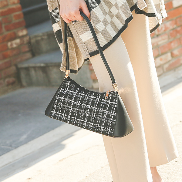 Tweed Color Combination Gold Ring Shoulder Bag