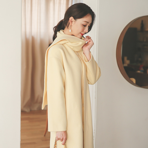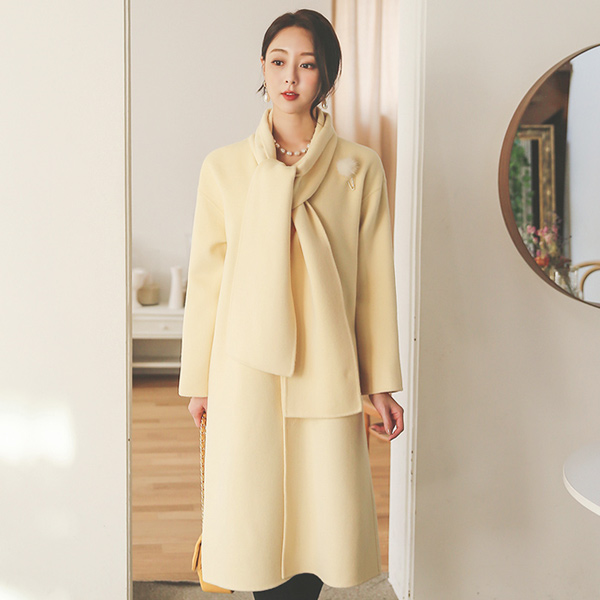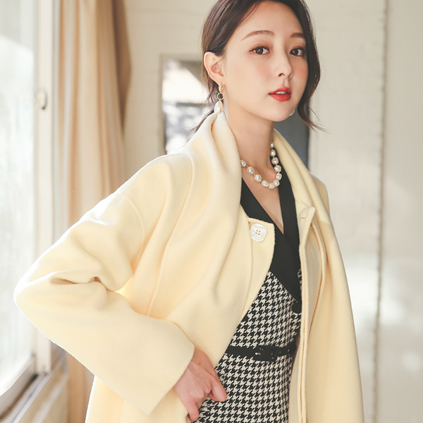 muffler Shawl Collar Shell Button Hand-Made Wool Coat