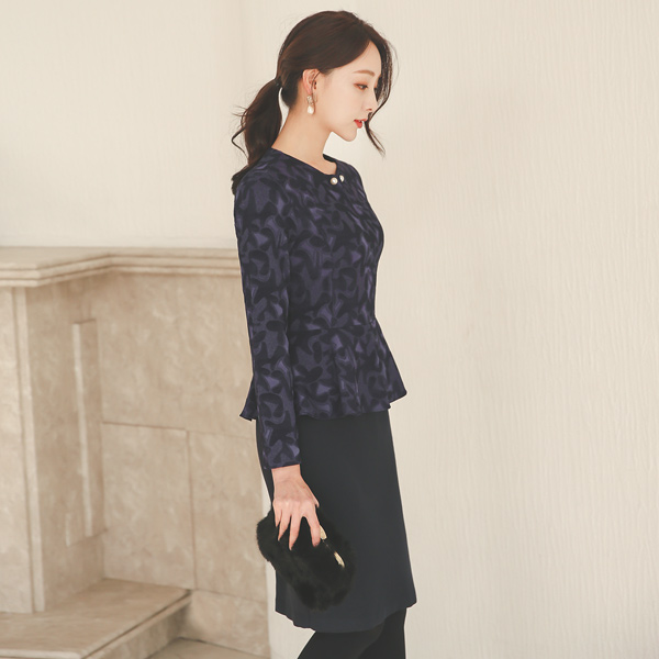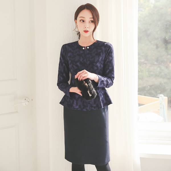 Pearl Brooch Jacquard Peplum Dress