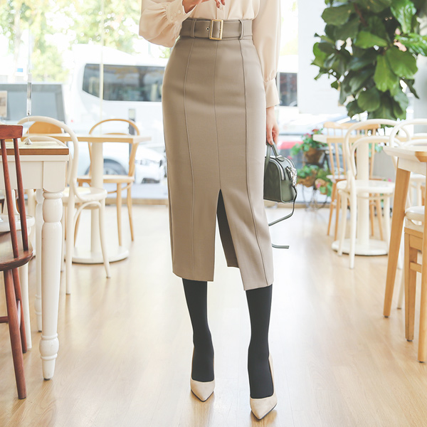 Edge Deep-Slit Gold Buckle Belted High-Skirt Ⅱ