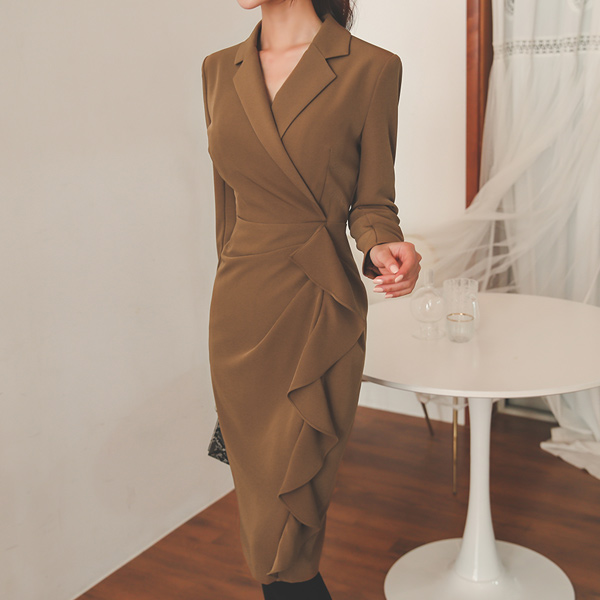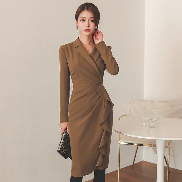 Collar Wrap Unbalance Frill Line Modern Dress