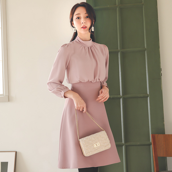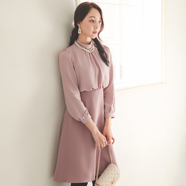 Romantic High-Neck Shirring A-line Dress Ⅱ