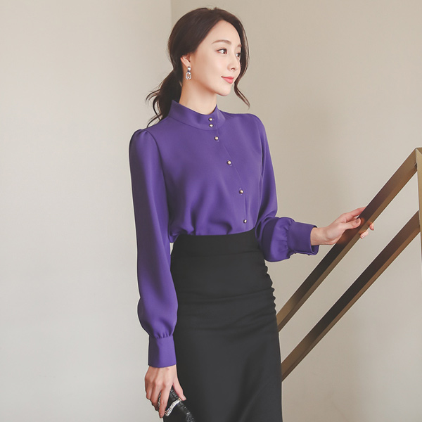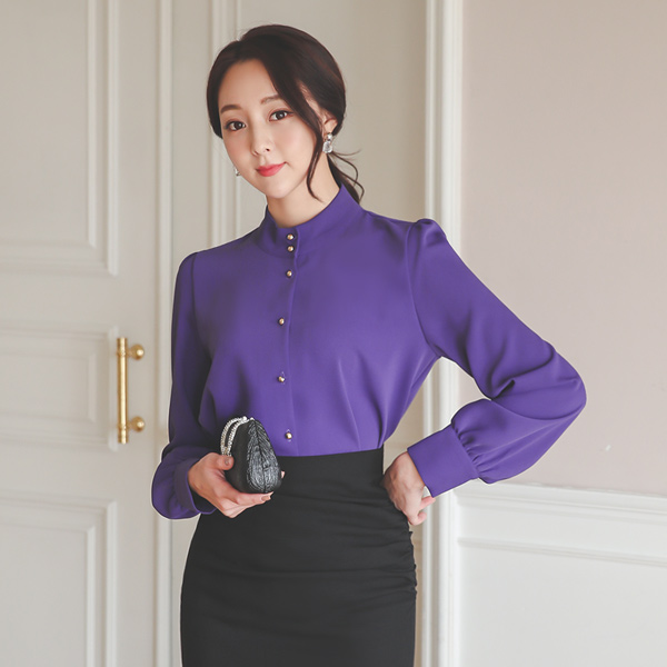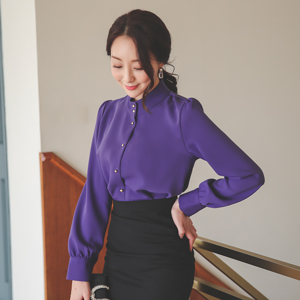 Gold Button Soutien Collar Puff Blouse
