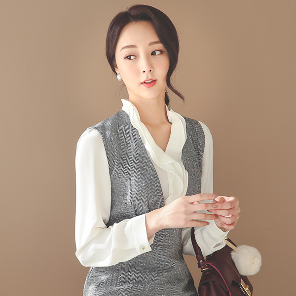 Elegance Ruffle Tiered High-Neck Blouse