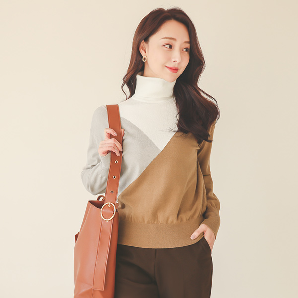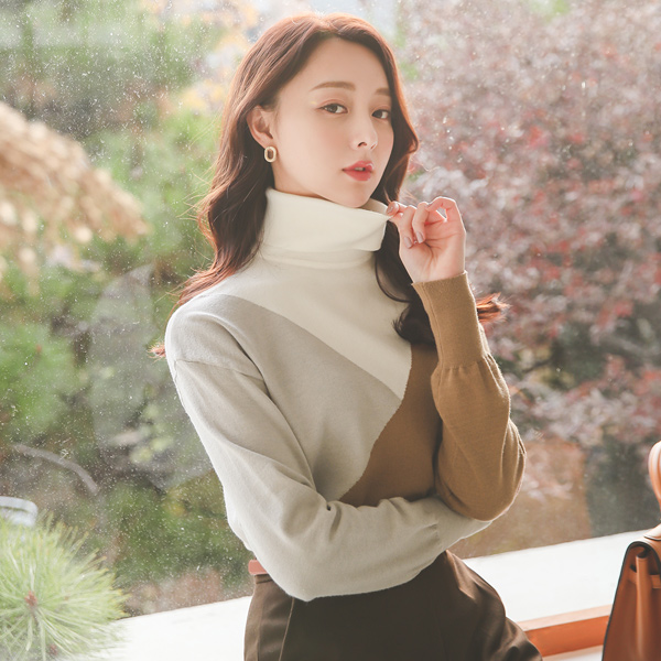 Section Color Combination Turtleneck Knit