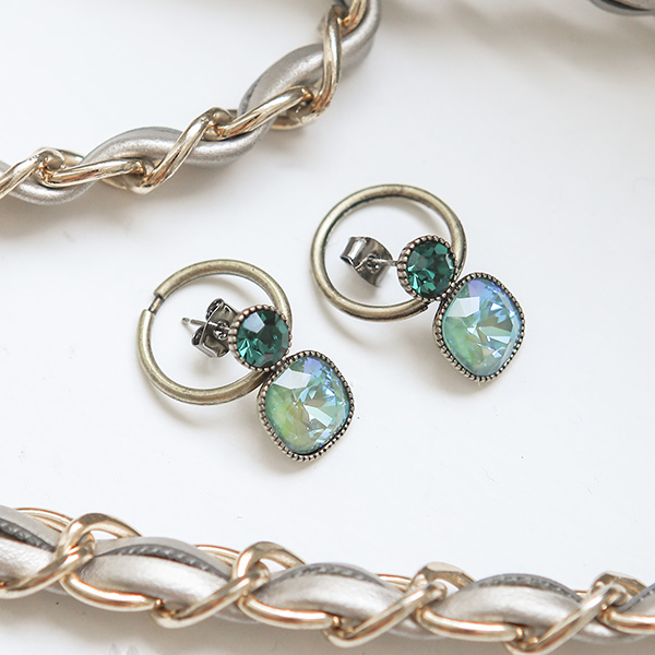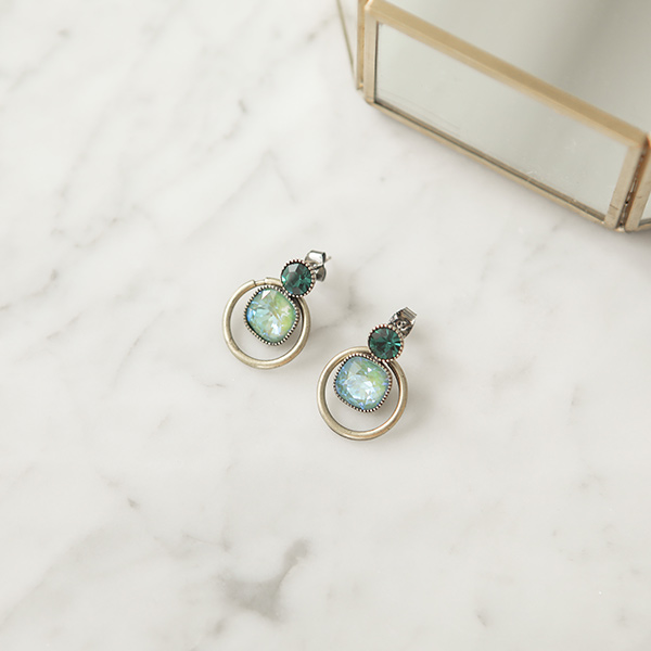 Antique Gold-Ring emerald Cubic Earring