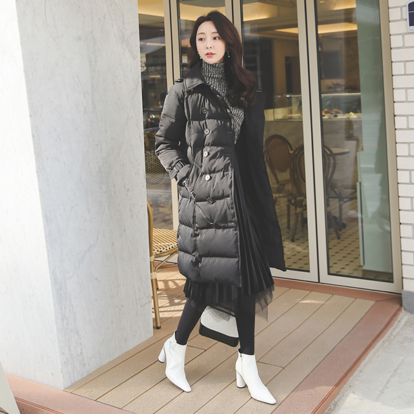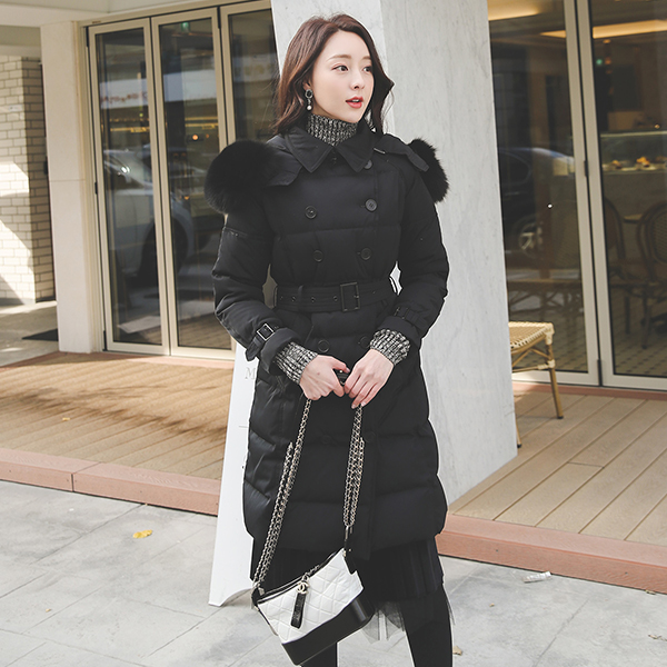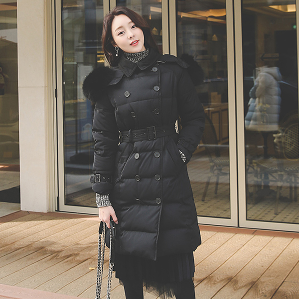 Duck Down Quilting Belted Fox-Fur Padding