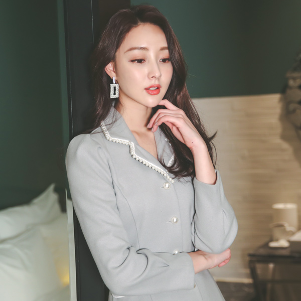 Hepburn Pearl Trimming Collar Flared Wool Dress