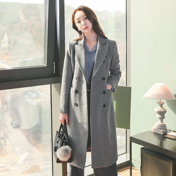 Formal 믹스체크 Double Tailored Wool Long Coat