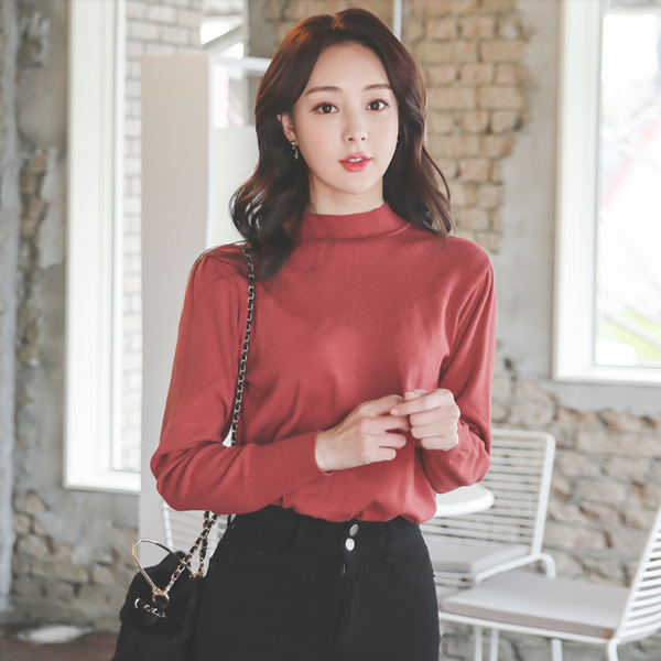 스카시 Punching Shoulder Shrring Half-Neck Knit