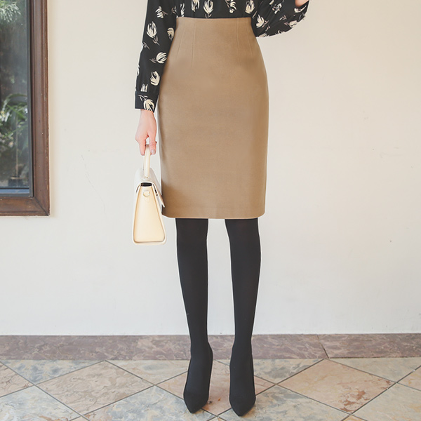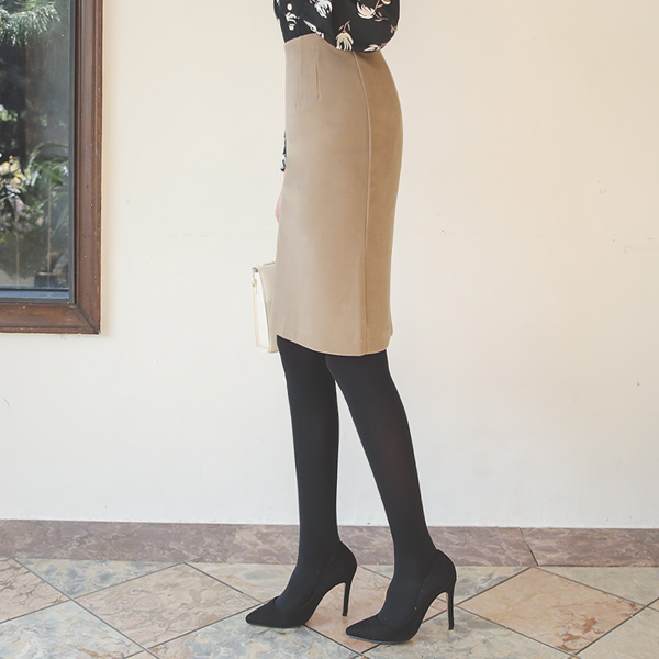 Suede Touch Dart-Line Span Skirt(napping lining)