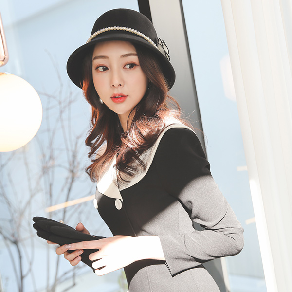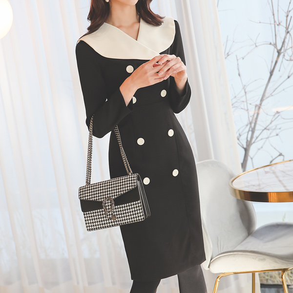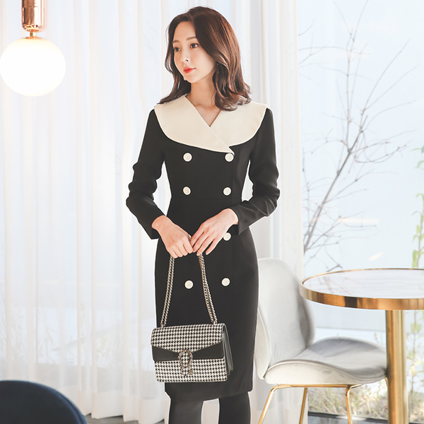Sailor Collar Double-button Color Combination Dress
