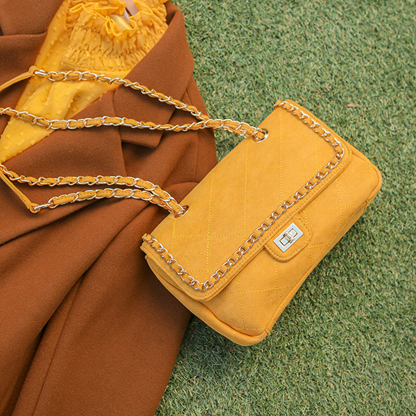 Suede Antique Gold Chain Bag