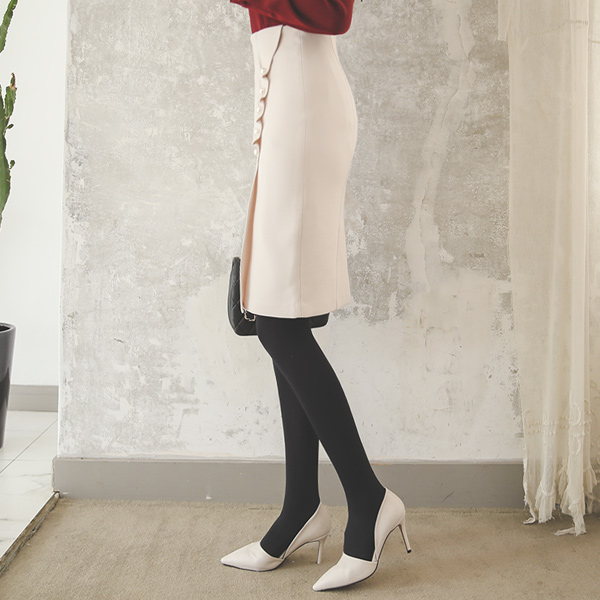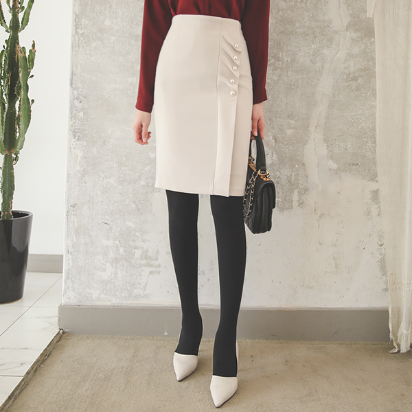 Side Shirring Ruffle Pearl Span Skirt