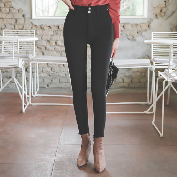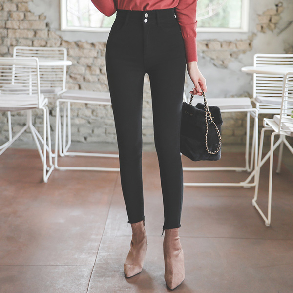 Two button High-Waist Fleece Span Skinny