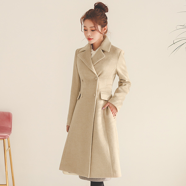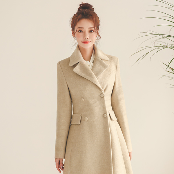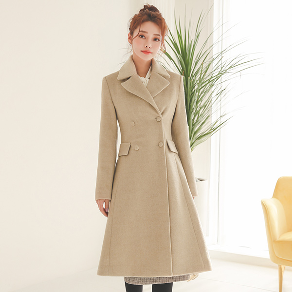 Double-button Pocket Wool A-line Coat
