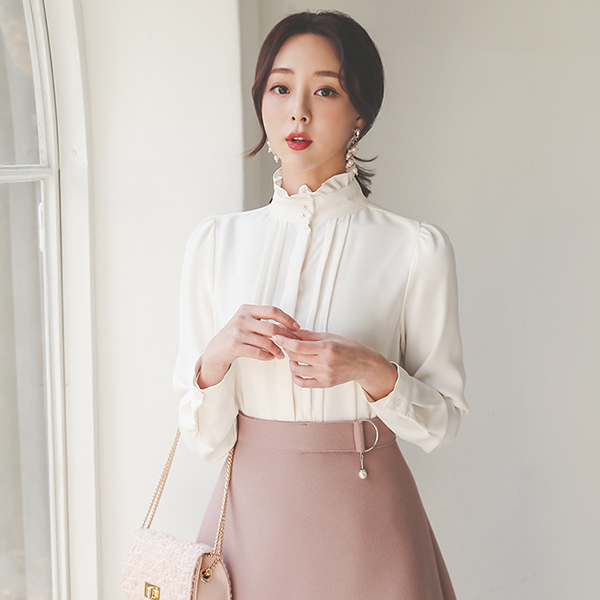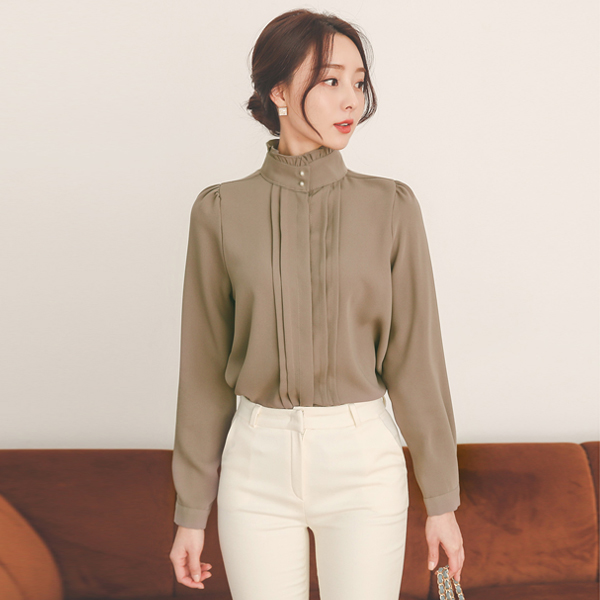 Frill Neck Pearl Pintuck Blouse