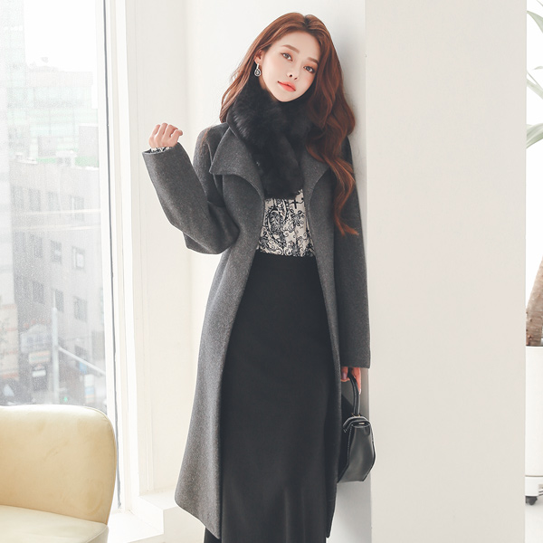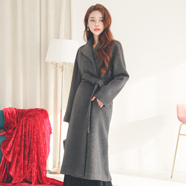 Basic Wing Collar Wool Belted Open Coat