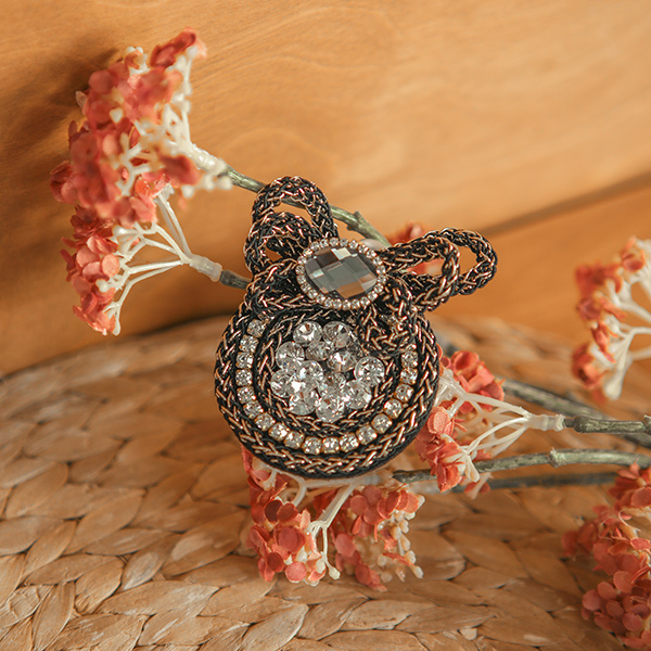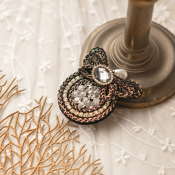 Cubic Ribbon Trimming Pearl-Gold Thread Brooch