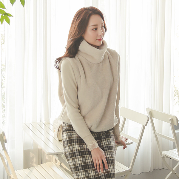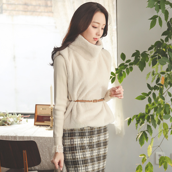 Eco Mink Fur Stretchy-Waist High-Neck Vest