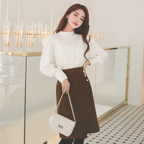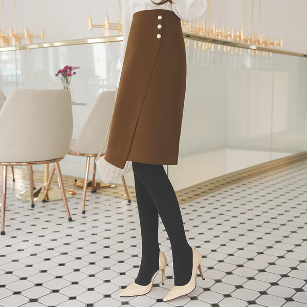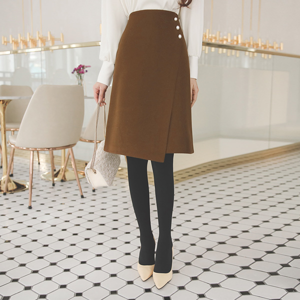 Triple Pearl Diagonal-Cutting A-line Wool Skirt
