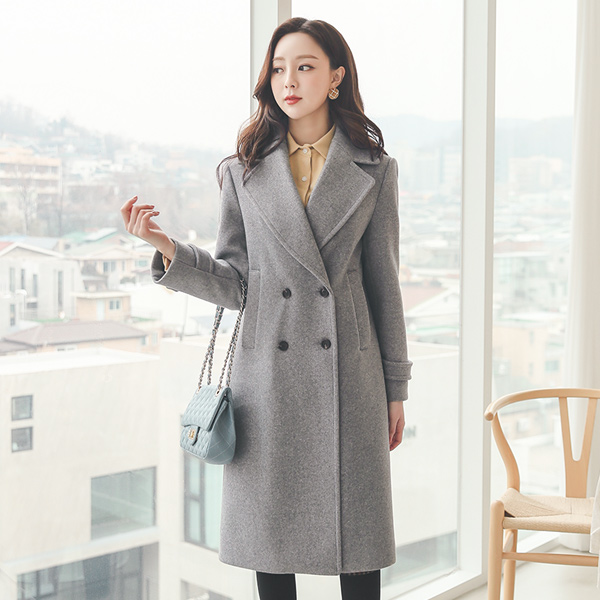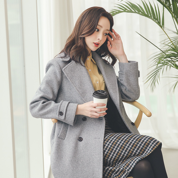 Wide-Collar Bokashi Double-button Wool Coat
