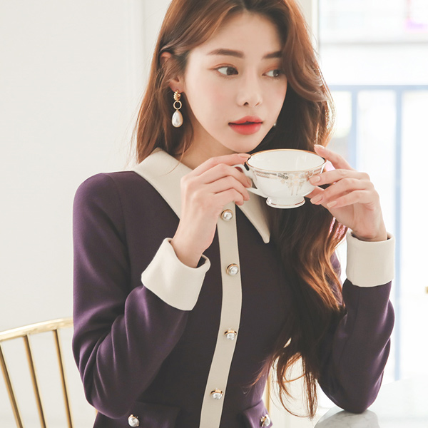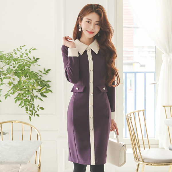 minimum Collar Color Combination Gold Pearl Pocket Dress