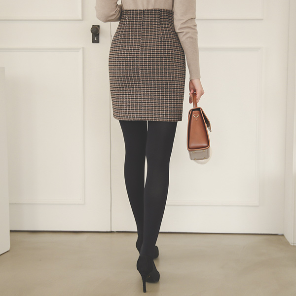 Mono Check Wool Mini Skirt
