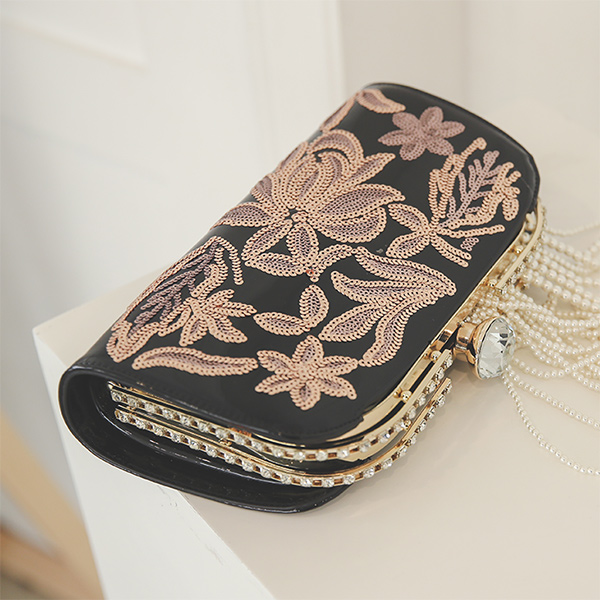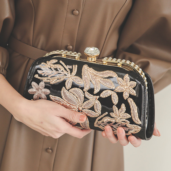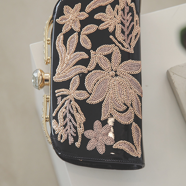 Flower Gold Spangle Enamel Clutch bag