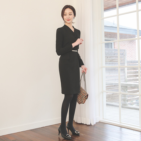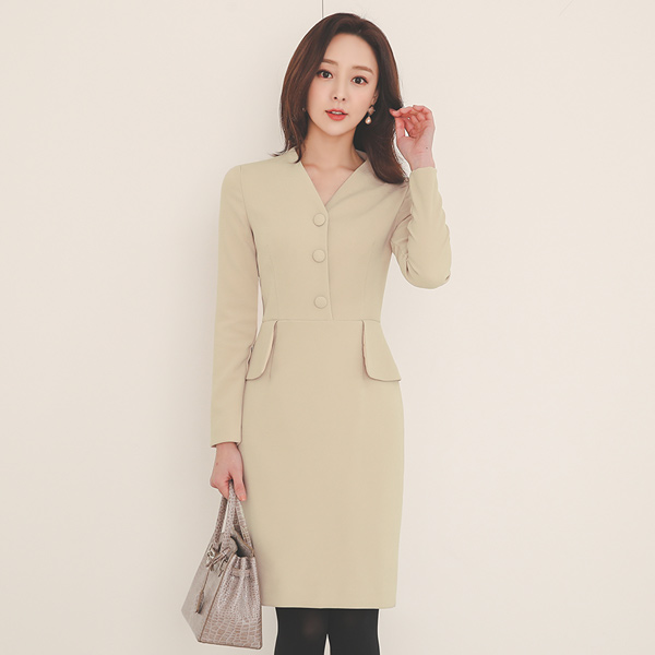 Triple Button Peplum H-line Modern Dress