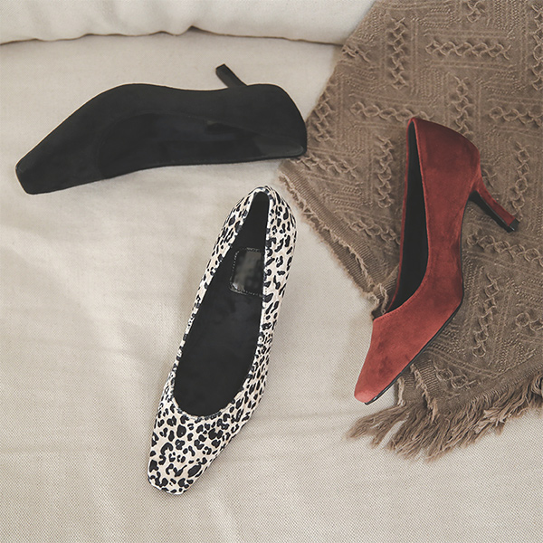 Suede Mink Fur Lining Square Middle Heels