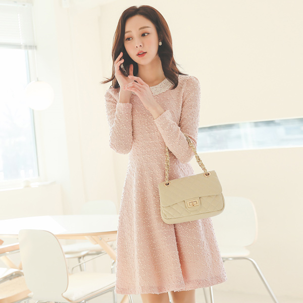 Lace Callor Spangle Flared Dress