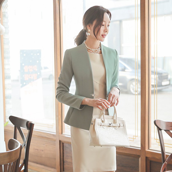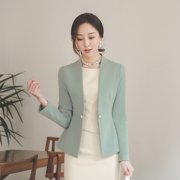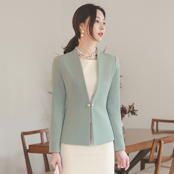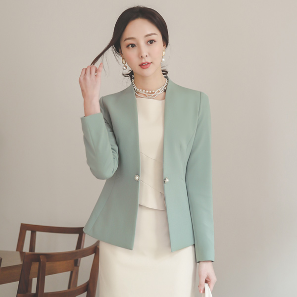 Double Pearl Decoration No-collar Jacket