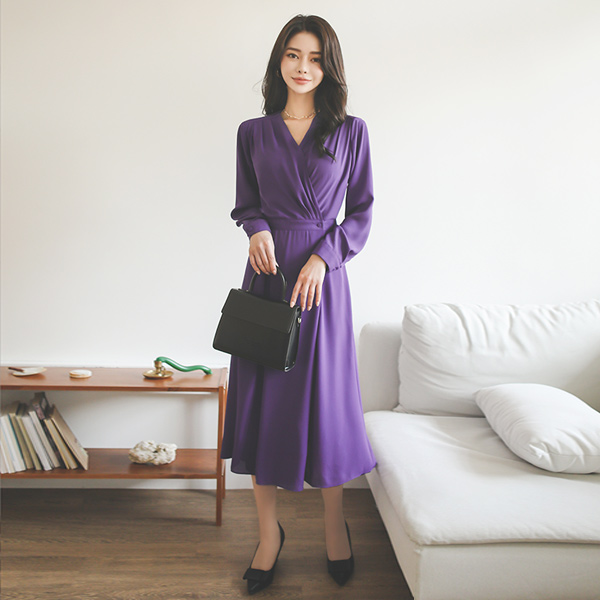 Shirring Wrap Chiffon Maxi Dress