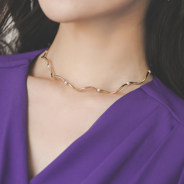 Wave Slim Pearl layered Necklace