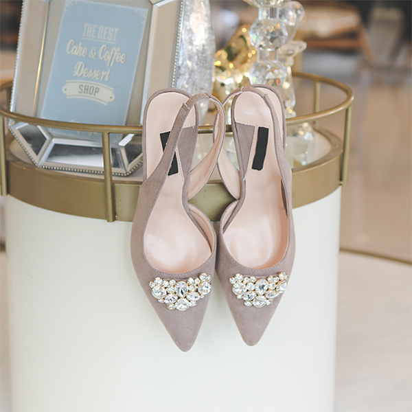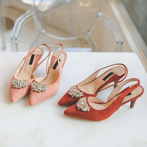 Suede Cubic Sling Backs Heels