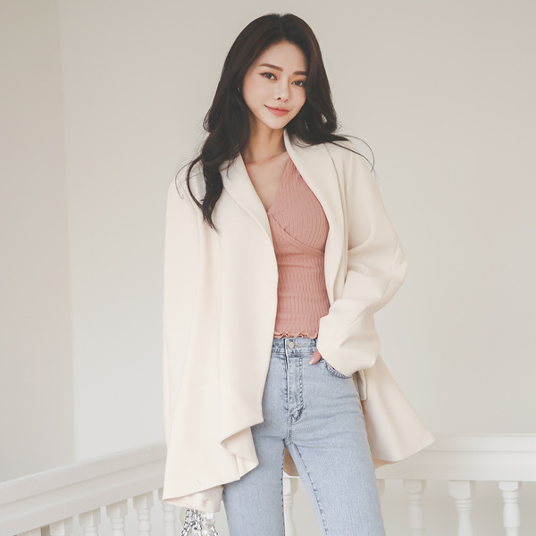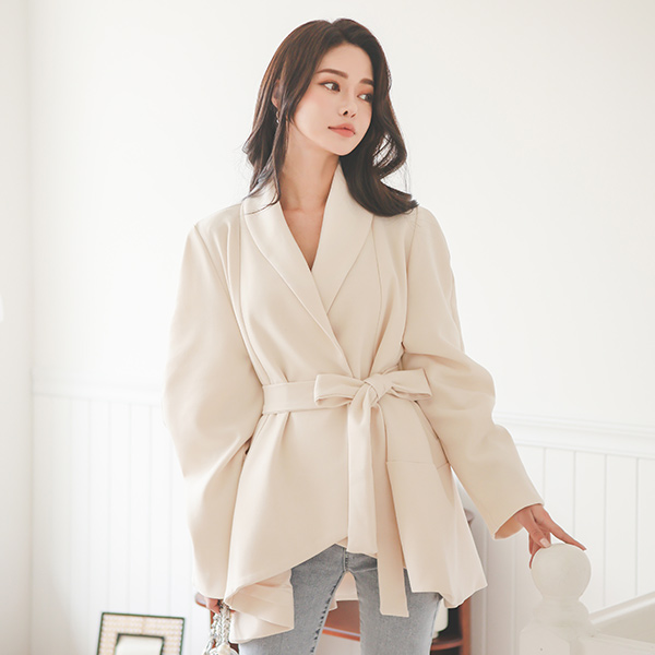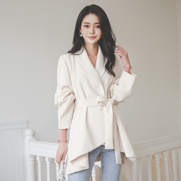 Shawl Collar Puff Sleeves Unbalance 훌 Open Jacket