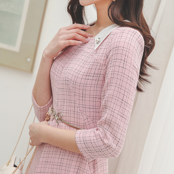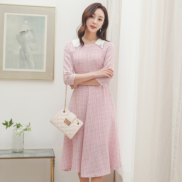 Satin Pearl Collar Tweed Dress
